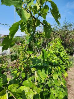 Участок ухоженный - вишни, яблони, виноград, малина, туи, клубника. На улице есть веранда, мангал, качели - одним словом, все для комфортного проживания и отдыха.