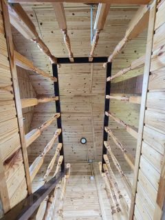 На первом этаже расположена баня, которая отапливает весь дом и комната, на втором этаже - одна большая просторная комната площадью 25 кв. метров.