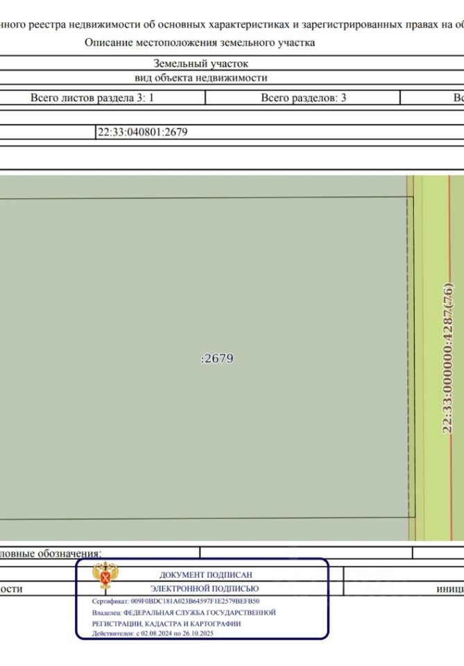 Кадастровый номер участка 22:33:040801:*** указал продавец