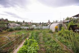 На участке: баня, туалет, хоз. постройки, две теплицы. Произрастают плодово-ягодные культуры (яблоня крупноплодная, яблоня-полукультурка, смородина, малина, крыжовник, виноград, клубника, вишня, жимолость, калина).