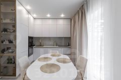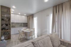*косметический ремонт в современной стиле в оттенке белого золота сделан в кухне гостиной и в санузле