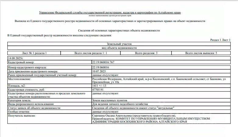 - юридическая чистота - участок оформлен через администрацию Косихинского района!