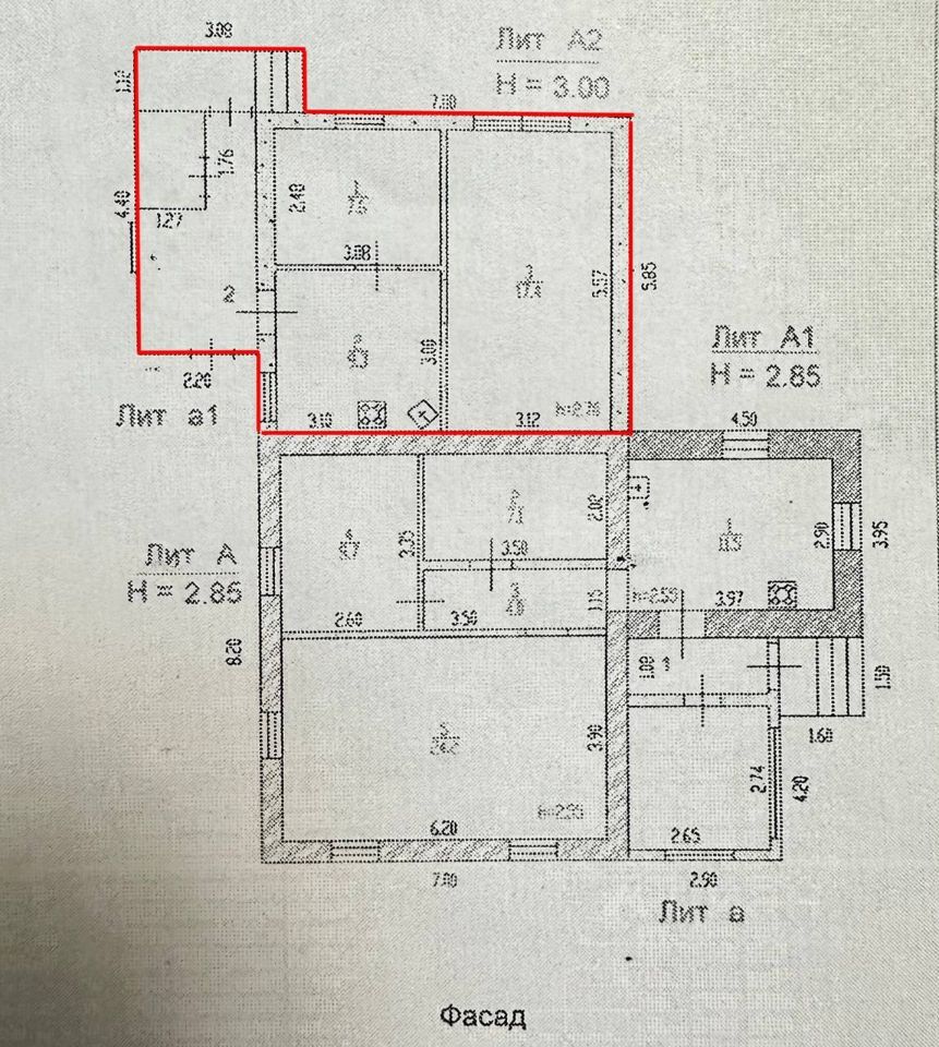! Красным на плане обозначена продоваемая часть дома !