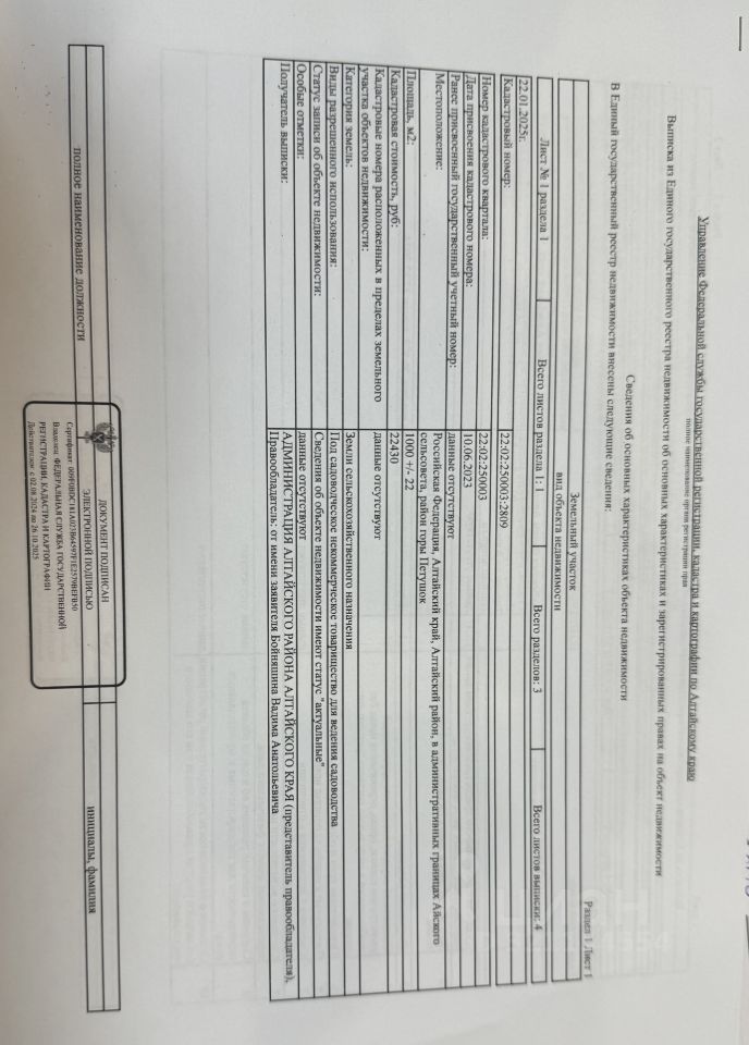 Статус участка