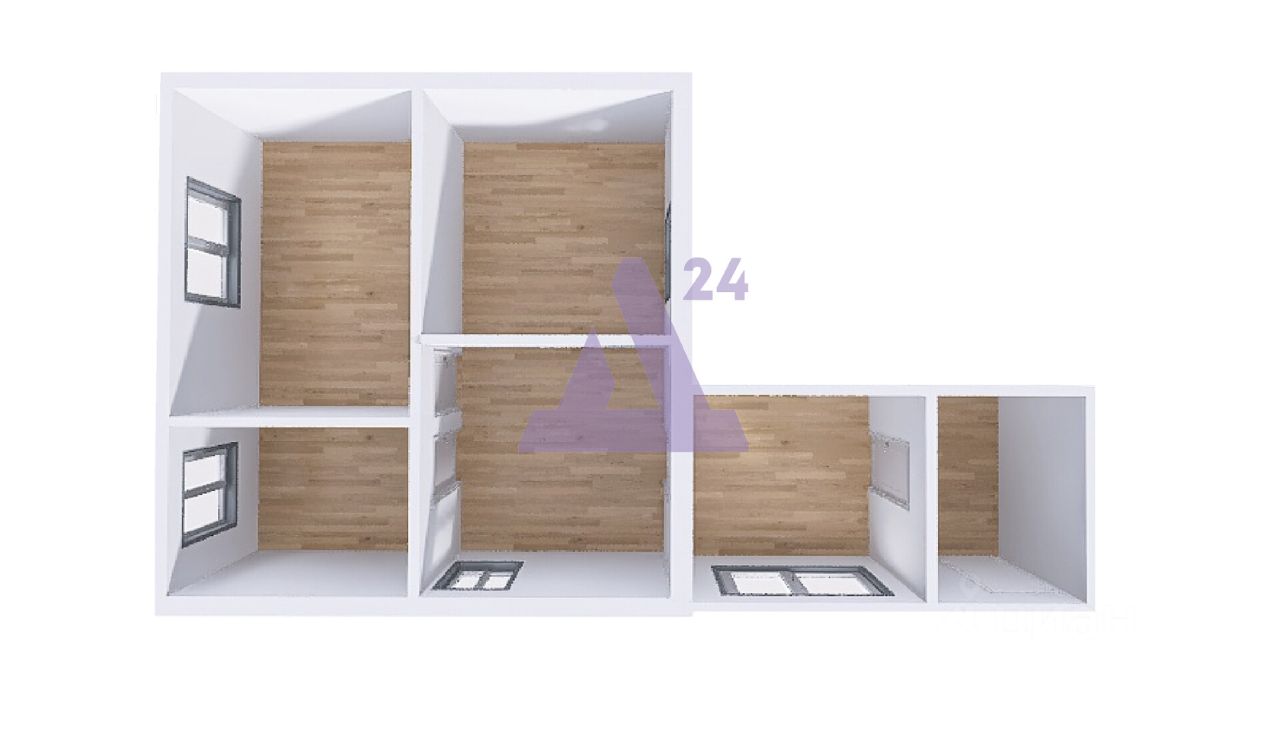 Общая площадь дома — 60 кв. м. Внутри вас ждут кухня и три комнаты. Санузел находится в доме.