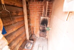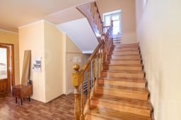 Дом построен в 1999 году из кирпича (кладка три кирпича с утеплителем, стены оштукатурены). В доме два этажа и полноценный подвал (71,7 м.кв.). В подвале размещены все коммуникации, счетчики и газовый котел. Из подвала еще есть лестница в погреб. Первый этаж две комнаты ( 27,5 и 10,2 м.кв.) кухня 15 м.кв., санузел 6,5 м.кв. Второй этаж 2 комнаты (20 и 16,8 м.кв.), санузел 3,8 м.кв, кладовая. Так же на второй этаж есть отдельный вход с улицы первого этажа, где располагается прихожая, санузел, кухня-гостиная 30 м.кв. и комната 17,7 м.кв. Всего в комнате 6 комнат, 3 санузла, 2 кухни. Высота потолков — 2,5 метра, что создаёт ощущение простора и свободы. В доме есть гараж 60 м.кв. с автоматическими дверями, шикарная баня из бревна с комнатой отдыха, мойкой и парной. Ухоженная территория 8 соток с газоном, плодовыми деревьями и кустарниками.