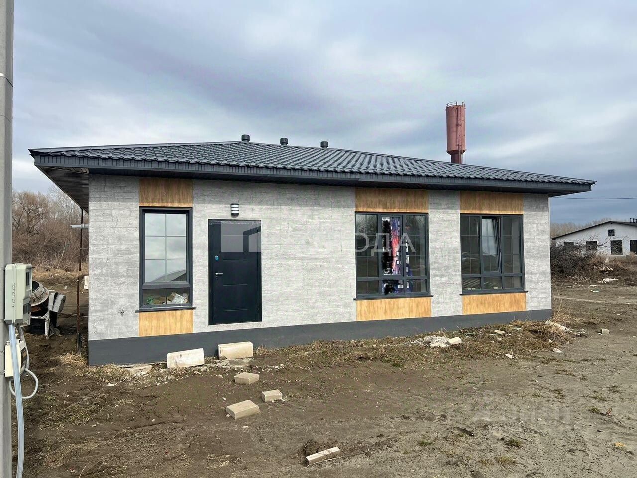 Год постройки — 2024. Дом построен из современных материалов (газоблок-сибит) с деревянными перекрытиями и имеет один этаж. Высота потолков — 2,75 метра. Отопление обеспечивается собственной котельной.