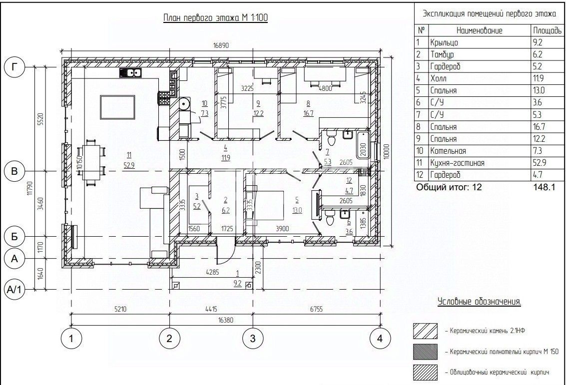 Планировка дома 148 м² продуманна до мелочей.