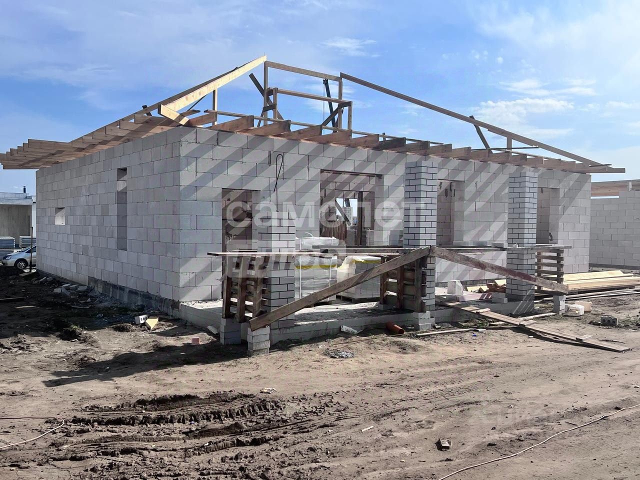 Стены дома выполнены из клееного газобетона.