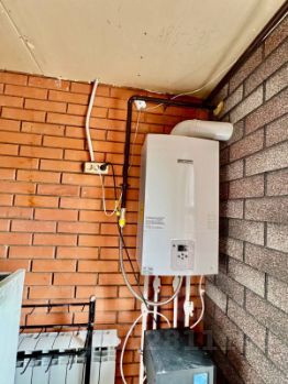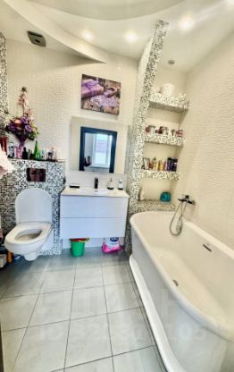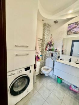 Совмещенный санузел с ванной. Установлена стиральная машина и мощный бойлер на 200 литров для бесперебойного снабжения горячей водой.