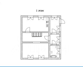 Первый этаж включает просторную прихожую, большую кухню-гостиную, отдельную комнату, коридор и совмещённый санузел.
