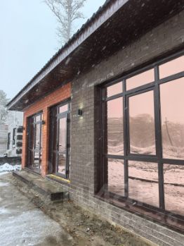 Окна и двери выполнены из пластика WHS by VEKA, фурнитура Rehau Grazio.