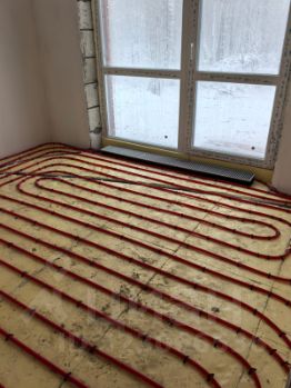 В доме выполнены теплые полы, шаг укладки 15 см, закрепленные монтажной лентой для теплого пола, далее уложен утеплитель и закрыт полусухой стяжкой (под чистовую укладку ламината, плитки и т.д.)Будут установлены внутрипольные конвектора +радиаторы отопления.