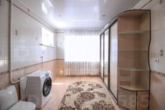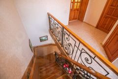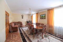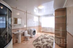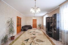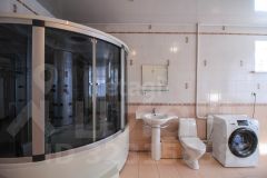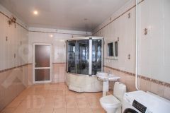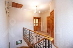 Кровля сделана из железа, подведены все необходимые коммуникации: электричество, газ, водоснабжение, центральная канализация. Установлены железобетонные перекрытия. Выполнен качественный чистовой ремонт. Дом просторный и имеет два совмещённых санузла. На участке расположены гараж, баня и бассейн. Территория охраняется. Подъезд к участку асфальтированный.