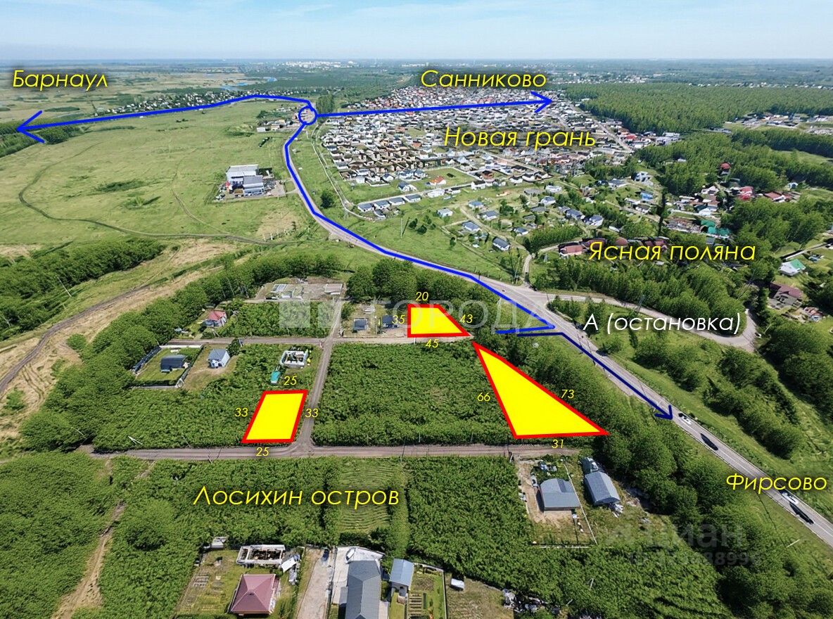 • Участок находится недалеко от развязки на Барнаул, а значит не будете стоять долго в пробках в час пик.
