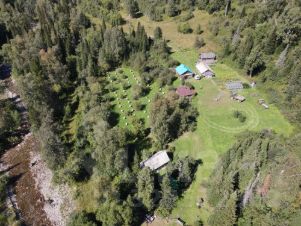Участок находится у подножия высокогорных белков. Лес полон различных ягод, грибов и кедровых орехов. В реке ловится крупный хариус.