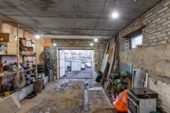 Есть постройки: гараж с погребом, банька, навес и хоз постройки.