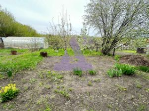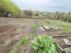 Участок площадью 5,6 соток ухожен и радует глаз плодово-ягодными посадками, аккуратными грядками из шифера и теплицей для выращивания свежих овощей.