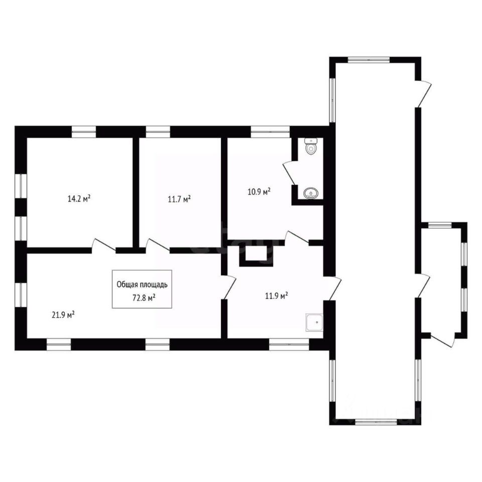 Площадь дома составляет 72,8 кв.м, площадь участка 36 соток.