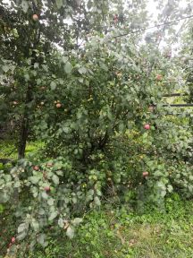 В саду растут яблони, груши, малина, облепиха, жимолость, смородина черная, смородина красная.