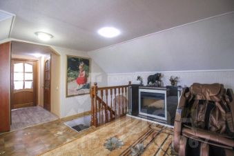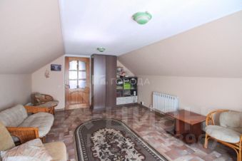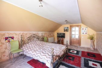 В доме на втором этаже расположены 2 комнаты, на первом этаже кухня- гостиная, комната, 2 с/у, гараж на 2 машины, есть погреб. На участке находится баня 4х5 м из бруса, бассейн с подогревом,теплица.