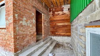 На первом этаже расположено большое помещение. Залита чаша бассейна, выполнена обвязка труб под фильтрацию, выставлены скиммера, донный слив. рядом с бассейном внутри помещения смонтирован рубленный сруб из кедра-это баня , в бане залита плита для банной печи. Частично установлены в проемы пластиковые окна.
