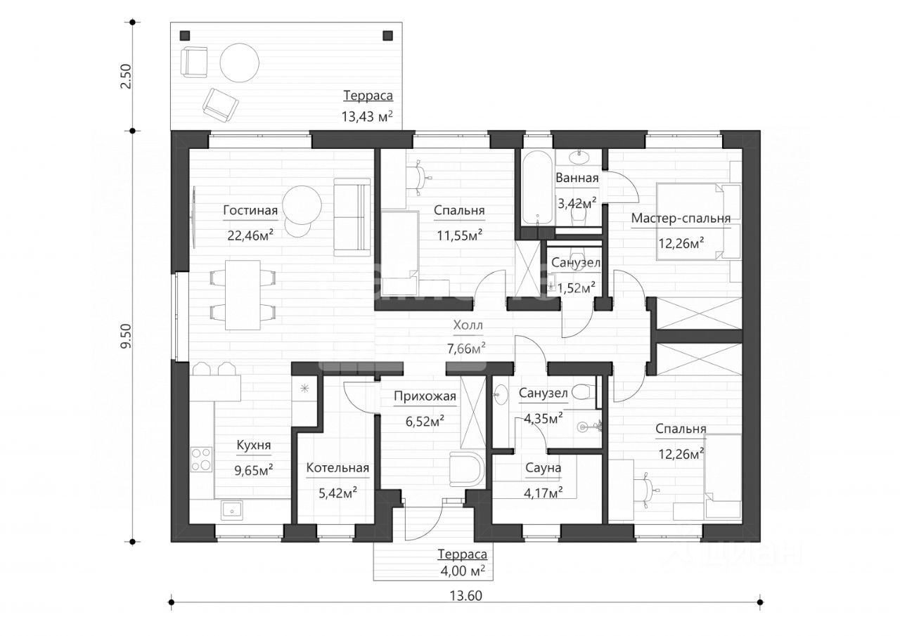 - Собственная сауна для расслабления после напряжённого дня.