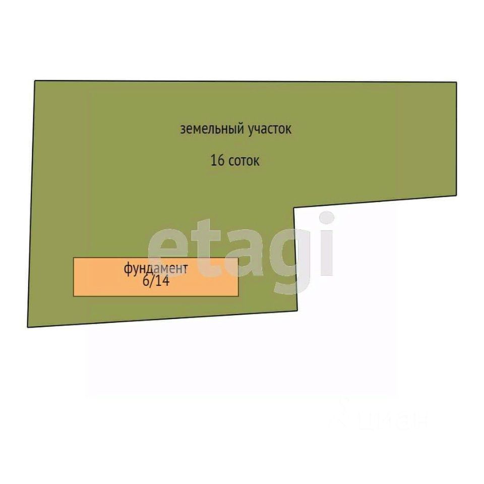 На участке расположен объект незавершенного строительства, построен фундамент для жилого дома 6*14 метров.