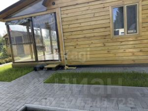 Общая площадь дома составляет 50 м². На первом этаже расположена объединенная кухня-гостиная с выходом на просторную закрытую веранду с панорамным остеклением.
