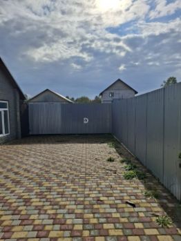 Придомовая территория выложена тротуарной плиткой. Участок огорожен забором.