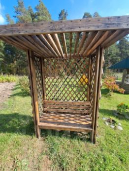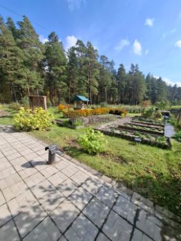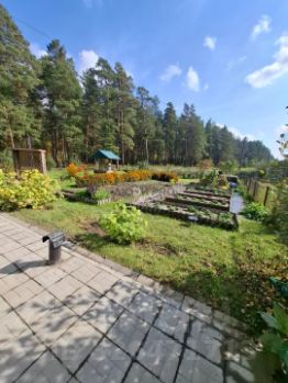 Участок угловой, общей площадью 11 соток, граничит с лесом. На участке расположены: баня, гараж, надворные постройки. Оборудованы места отдыха: беседка, летний бассейн, декоративный пруд, действующий колодец.