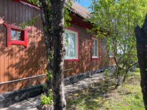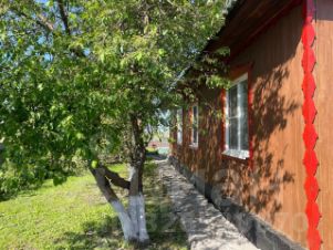 На участке имеются: детская спортивная площадка, углярка с окном для загрузки угля с улицы, баня, уличный туалет, гараж 5x6, сараи для птицы и скота, теплица 3x6, вольер для собаки 2х4. Растут яблони, вишни, ели.