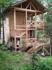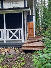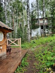 На участке расположено четыре завершенных строения: один - аил, два двухэтажных дома и один одноэтажный. Два из них с готовой отделкой, два другие готовы к завершению. Предполагалось использовать этот комплекс, как музей и мастерские с проведением мастер-классов для туристов, одно из зданий уже работало и использовалось как галерея авторских работ. Потенциальный покупатель может проявить свои дизайнерские фантазии в оформлении и использовании данного участка и строений. Подведено электричество.