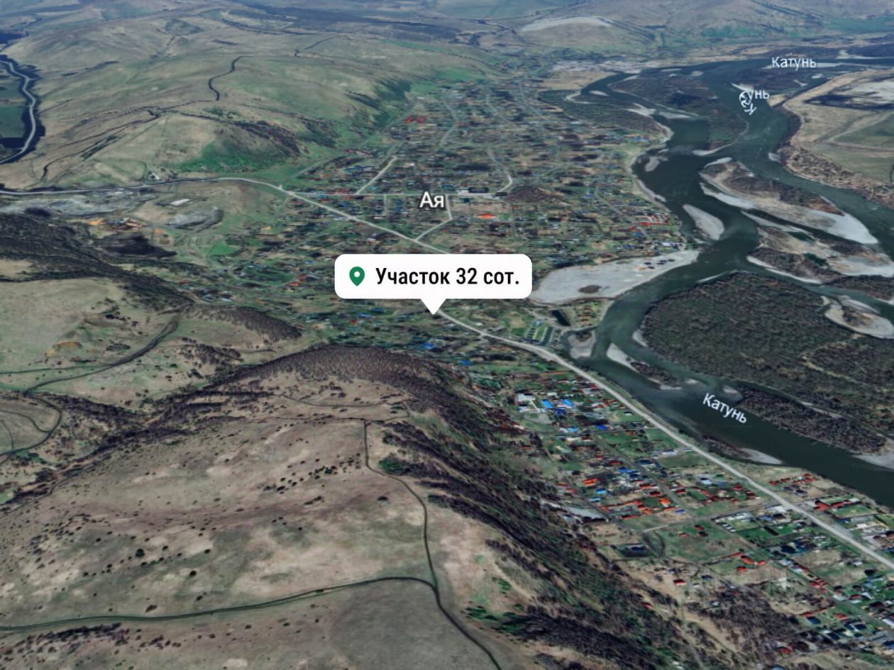 Участок расположен на ровной местности рядом с оживлённым перекрёстком Айского тракта. Здесь открываются красивые виды, так как это место находится вблизи слияния реки Ая. Район обладает большим инвестиционным потенциалом, быстро развивается, особенно учитывая близость строящегося международного аэропорта Горно-Алтайска, всего в 150 метрах по прямой от реки Катунь. Такое расположение делает этот участок особенно привлекательным для вложений и перспективного развития.