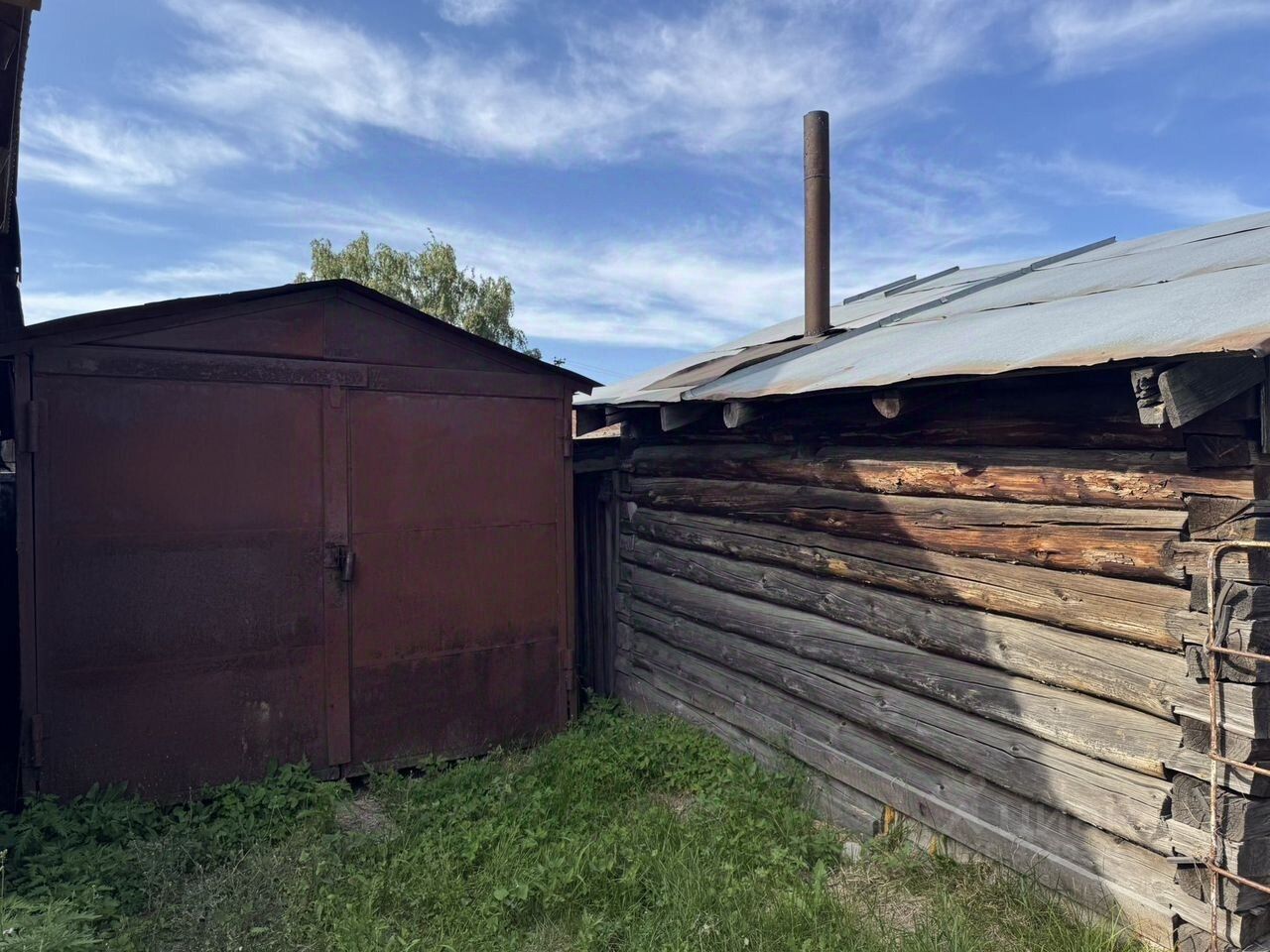 Есть железный гараж, баня, требующая ремонта.