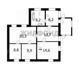Площадь- 84,5 кв.м. Четыре комнаты, кухня (14,6 кв), прихожая.