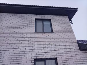 из газблок+ утеплитель, облицовка - кирпич. Расположен на участке площадью 7 соток.