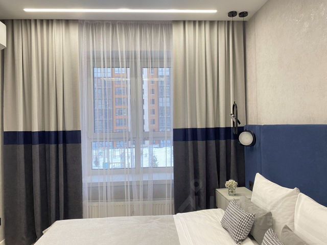 В спальне шторы блэк-аут для комфортного отдыха днем.
