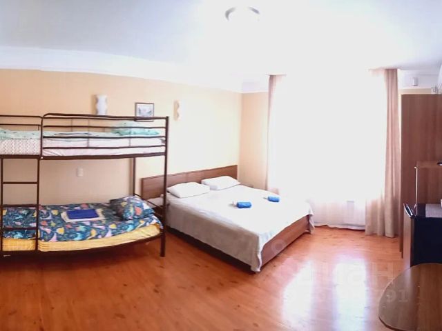 Комфортабельный номер для семьи с двумя детьми. Номер находится на втором этаже. К вашим услугам: двуспальная кровать, двух ярусная кровать, сан.узел с душевой кабиной, кондиционер, холодильник, чайник, полотенца. Завтрак в стоимость номера не входит, может быть оплачен при заселении. Стоимость комплексного завтрака - 400 руб/чел. Номер не предназначен для проживания с питомцами.