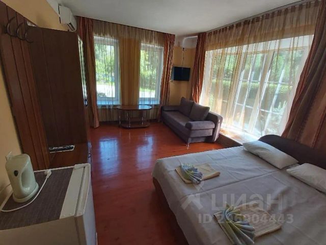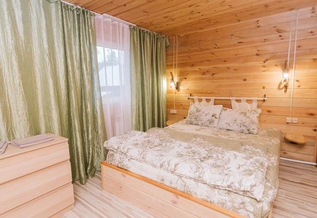 Номер расположен на 1 этаже. В номере 1спальная кровать и раскладной 2спальный диван (140см), санузел (душ, туалет, раковина), смарт-ТВ, вешалка, комод, тумбочка, стул, постельное и полотенца, туалетные принадлежности (гель, шампунь, жидкое мыло, т/б), тёплый пол. Всего 6 номеров, по 3 номера на каждом этаже. Кухня на 6 номеров одна и 2 больших беседки, находятся на открытом воздухе со всем необходимым для приготовления пищи (плита газовая, микроволновка, посуда, мангальная зона, ракета с казаном, раковина с проточной водой, водонагреватель). В беседках холодильники (6 номеров, 6 столов, 6 холодильников). Помимо на территории имеются: парковка, детская площадка, уличный туалет, качеля, открытый детский бассейн (без подогрева) с шезлонгами, баня с крытым бассейном (с подогревом).