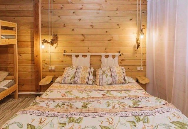 В Глемпинг-парке "Дикий берег" имеются различные варианты размещения, на любой вкус и пожелания: от бюджетного до изысканного, от уединенного семейного отдыха до корпоративных мероприятий или свадебных банкетов. Многообразие видов размещения включает коттеджи, бунгало, бунгало на пирсе, шале и полноценную улицу в современном европейском стиле с виллами различной вместимости и планировки. Каждый из указанных объектов работает по индивидуальному графику и сезонности. Три современных круглогодичных отеля: "Югославский", "Шале" и "Alira Palace" с благоустроенными номерами на любой вкус и бюджет с возможностью размещения примерно до 250 номеров, выполненные в различных стилях и интерьерах. В номерах отелей или на отдельных локациях : beach street на пляже у озера; villa street, побережье Ая villa street estet, бунгало — вы всегда сможете выбрать для себя самый комфортный вариант проживания: от уютного номера эконом-класса до двухуровневых люкс-апартаментов, комфортных номеров-студий до уединенного отдыха в коттеджах или на виллах. Дизайн и стиль выполнен в современном европейском минимализме. В каждом номере от категории "стандарт" и выше предоставляется все самое необходимое для вашего комфортного проживания, ухода за собой и полноценного отдыха, а также включены завтраки по "шведский линии". На территории нашего природного комплекса есть рестораны с разнообразным меню, а также дополнительные услуги и все возможности для корпоративных гостей и проведения мероприятий на высшем уровне. Двуспальная кровать, тумбочки, шкаф, мягкая мебель, кухня, письменный стол, ТВ, мини-холодильник, чайник. Выход на лоджию. Туалетная комната: раковина, фен, душ.
