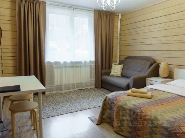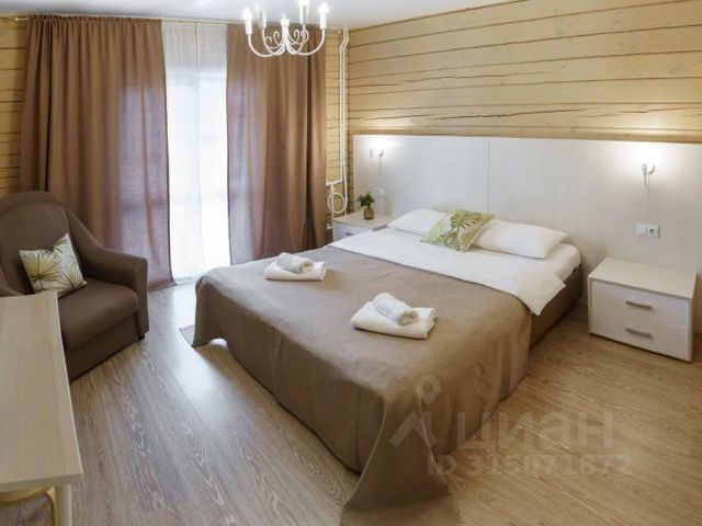 Студия 22 м кв - современные светлые номера находящиеся на 1 этаже деревянного коттеджа. В каждом номере: одна двух спальная кровать, раскладной диван, прикроватные тумбочки, обеденный стол, TV, СВЧ, чайник, шкаф для одежды, тапочки, полотенца, фен, собственный WC с душевой кабиной. В каждом номере предусмотрено 1 или 2 дополнительных спальных места.
