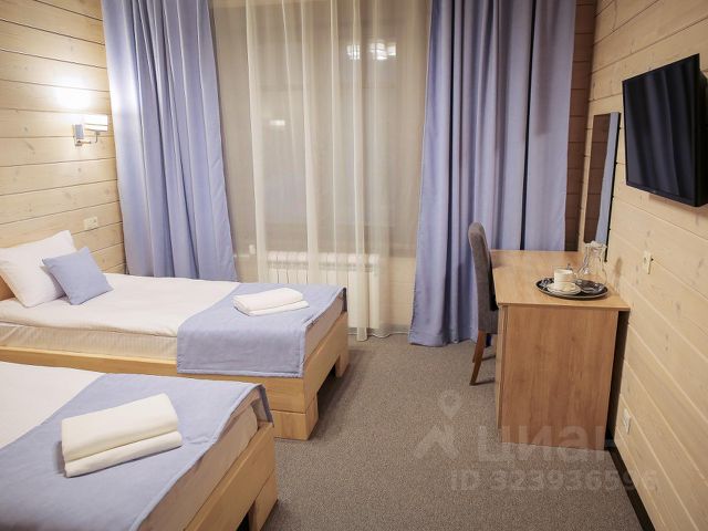 Номер оборудован всем необходимым для комфортного проживания: две односпальные кровати, которые можно раздвинуть по желанию гостей, холодильник, телевизор, сейф, стол, 2 стула, 2 тумбочки, шкаф, санузел с горячим душем.