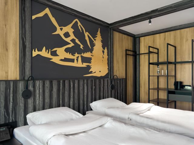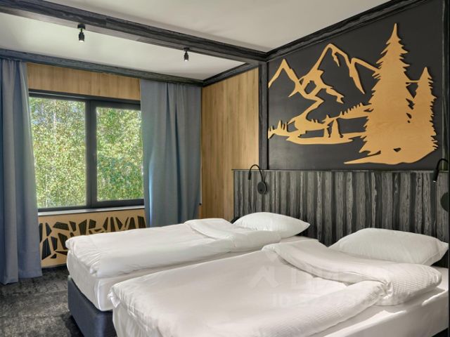 Отель "Среди Гор" категории 3* расположен в живописной горной долине Алтая всего в 30 минутах от аэропорта Горно-Алтайска и является частью всесезонного курорта развлечений в горах Altai Palace. Отель предлагает современную инфраструктуру, завораживающие виды на алтайские горы, а также широкий спектр развлечений для гостей любых возрастов. Для проживания гостям отеля "Среди Гор" доступно 154 стильных номера и 2 отдельно стоящих шале с видом на горный ландшафт. Каждый номер оснащен всем необходимым для комфортного отдыха: удобными кроватями с ортопедическими матрасами, чайными станциями, современными LED-панелями и доступом к Wi-Fi. Некоторые номера имеют балконы, а шале видовые террасы. В центральной части отеля расположен открытый подогреваемый бассейн, работающий в период с мая по сентябрь и оборудованный зоной для принятия солнечных ванн. На 2 этаже основного корпуса расположен лаунж-бар, где днем гости отеля могут заказать напитки, а в вечернее время посмотреть спортивные игры на большом широкоформатном экране или просто провести время с близкими и друзьями. На территории отеля готовится к открытию гастрокорт "Матрешка" первое и единственное гастро-пространство такого формата на территории Алтайского края. В основном зале на завтрак, обед и ужин гостям доступны блюда русской кухни по системе "шведский стол", а в остальных зонах расположены кафетерий с разнообразными напитками в формате самообслуживания, пекарня и кондитерская со свежим хлебом, пирогами и десертами, а также слот-холл. По вечерам "Матрешка" превращается в стильный бар, где можно продегустировать авторские коктейли от шеф-бармена и послушать атмосферные Dj-сеты. В номере есть все необходимое: - современный санузел с душевой кабиной - бесплатный Wi-Fi - телевизор С возможностью объединения с соседним номером с двумя односпальными кроватями.