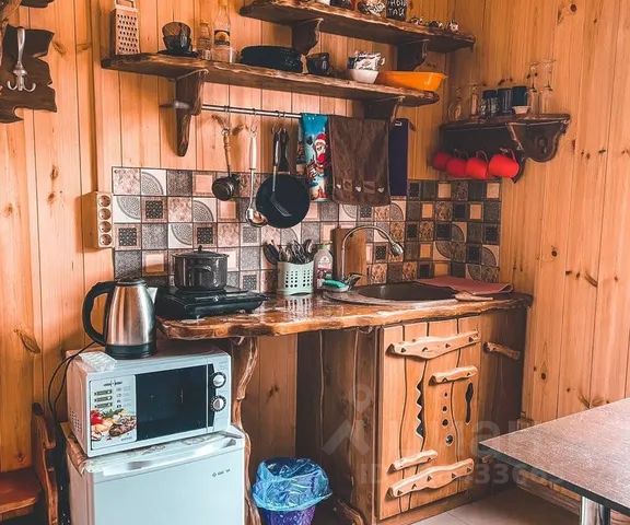 • Полноценная кухонная зона: плита, микроволновка, холодильник, чайник, посуда и раковина
