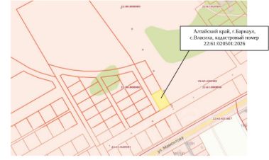Земельный участок с кадастровым номером 22:61:020501:2026 по адресу: Российская Федерация, Алтайский край, г. Барнаул, с. Власиха